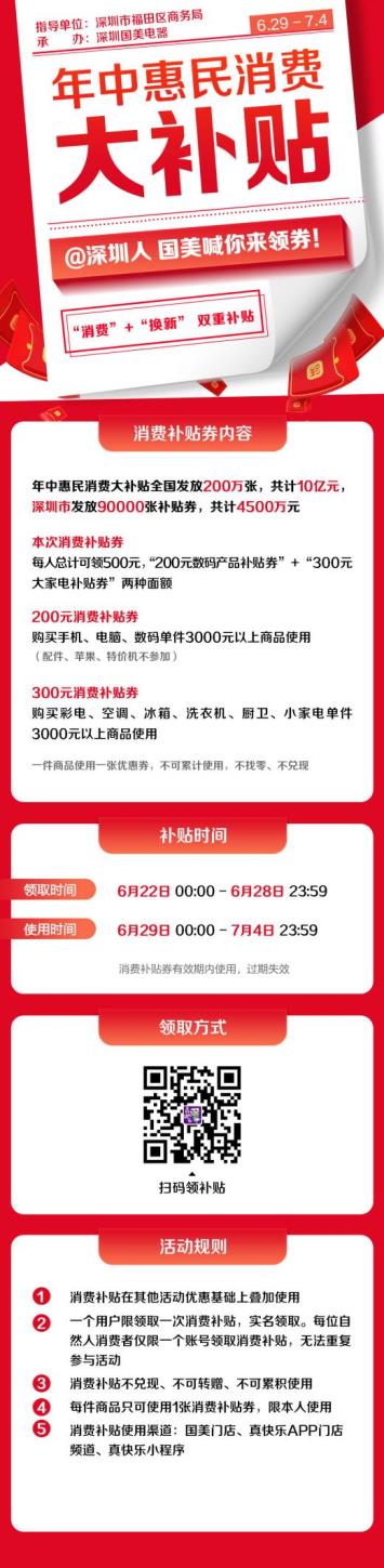 據(jù)了解,本次活動的發(fā)券時間為6月21日至6月28日,用券時間為6月29日至7月4日。全國消費者只需登錄國美線上平臺“真快樂”,找到“門店”頻道(一店一頁),進(jìn)入“年中消費惠民大補貼”活動輪播頁面,點擊進(jìn)入活動詳情頁即可領(lǐng)取補貼券。這次補貼將惠及全國總計約200萬人,數(shù)量有限,實名專享,廣大消費者想要薅羊毛一定要趁早!