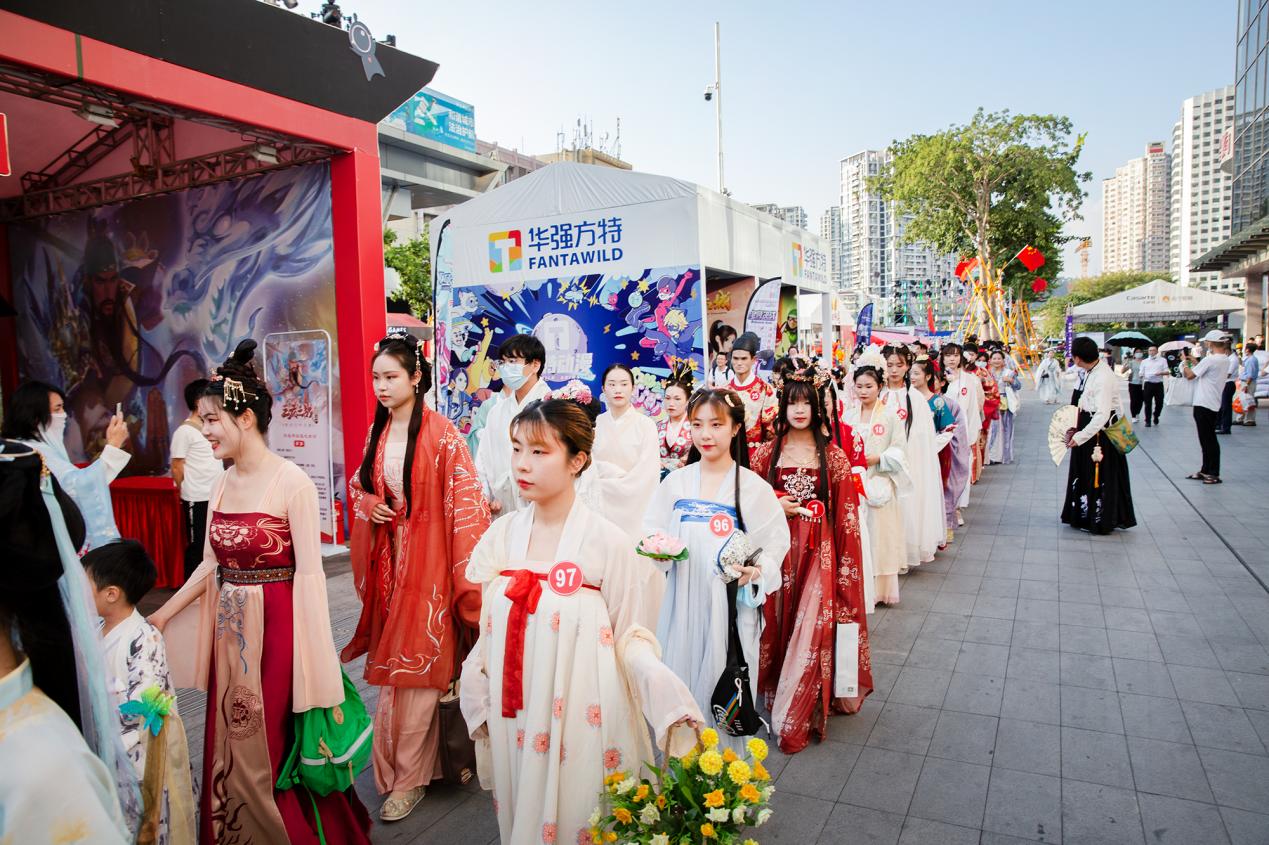 為了提升夜間經(jīng)濟業(yè)態(tài),節(jié)展期間電玩節(jié)組委會在每天的16時至21時共計舉辦了三十余項不同類型的賽事活動,包括COSPLAY大賽、紅白歌會、國風(fēng)國潮大賽、“第四屆王者榮耀全國大賽城市賽”“英雄聯(lián)盟 ·金鏟鏟之戰(zhàn)線下體驗派對”、主街游戲競技場、COSPLAY巡游、漢服巡游、國風(fēng)走秀等。同時還邀請知名COSPLAY團、人氣COSER熊祁、唯安、組合844樂隊、七朵家族舉辦了專場見面會和簽售會,吸引了大量觀眾駐足圍觀,臺上臺下熱情互動,掀起陣陣活動高潮,以沉浸式的體驗帶動新消費,打造深圳夜間消費新地標。