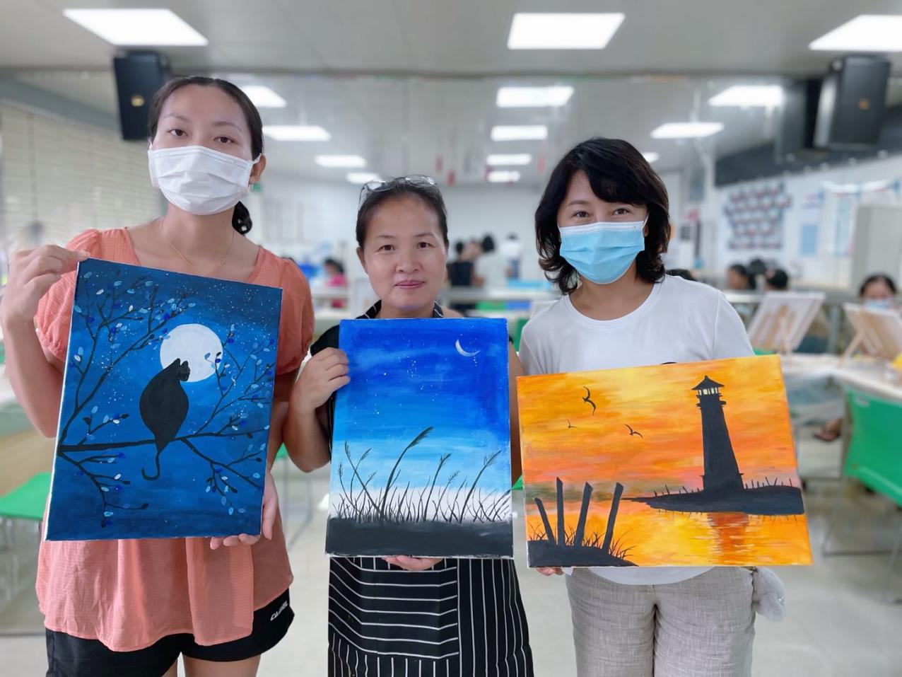 溫馨的環(huán)境,融洽的氣氛,專業(yè)的老師,友好的同伴,媽媽們度過了一個(gè)個(gè)美好的下午。盡管媽媽們都是零基礎(chǔ),但全情投入的專注,不僅釋放了壓力,更是打開了一扇通往油畫藝術(shù)的小窗。愛自己,愛生活,才能更好地愛家人,本次油畫班持續(xù)開展約兩個(gè)多月,媽媽們更好地享受屬于自己的油畫時(shí)間,學(xué)有所獲。