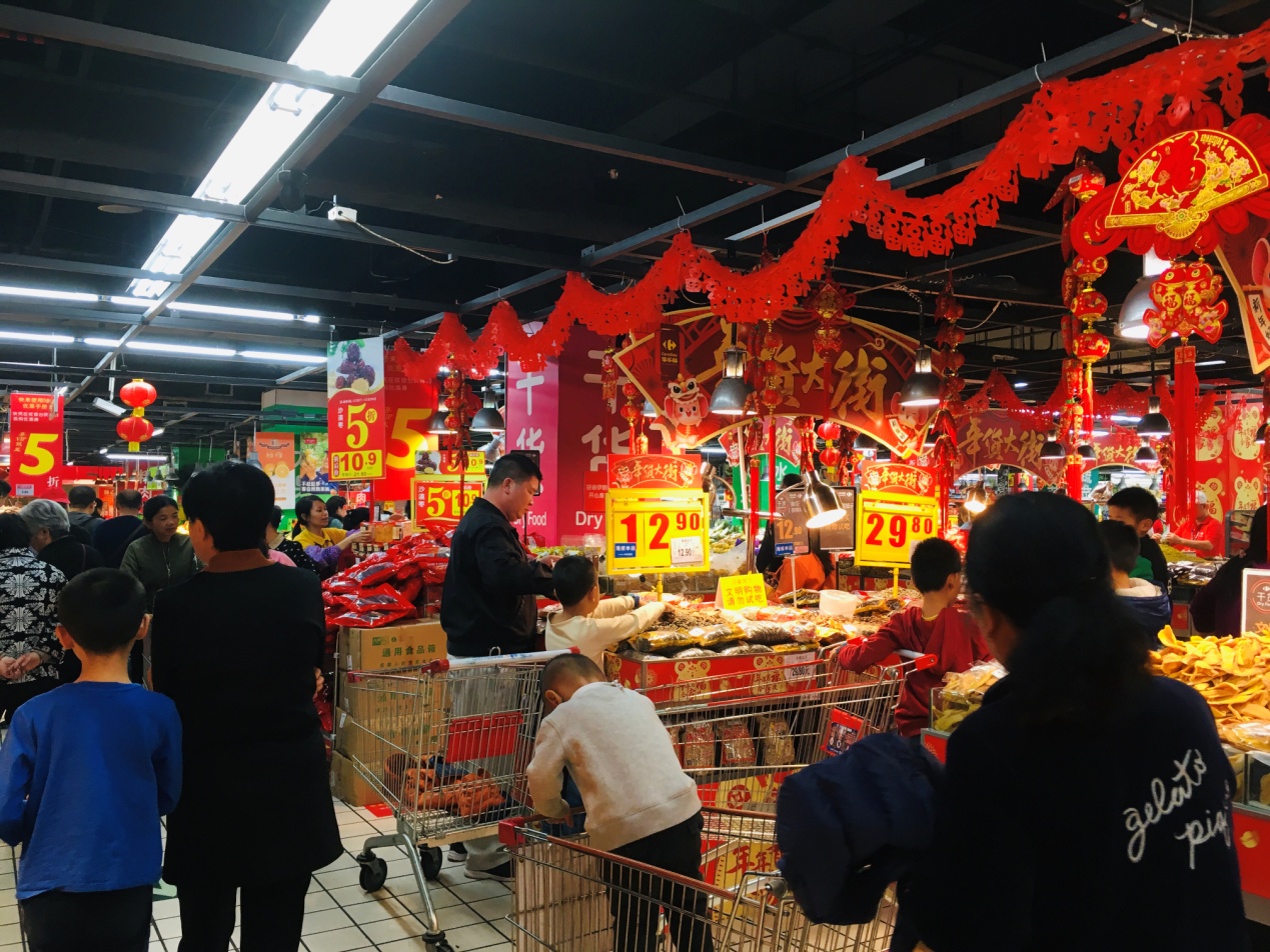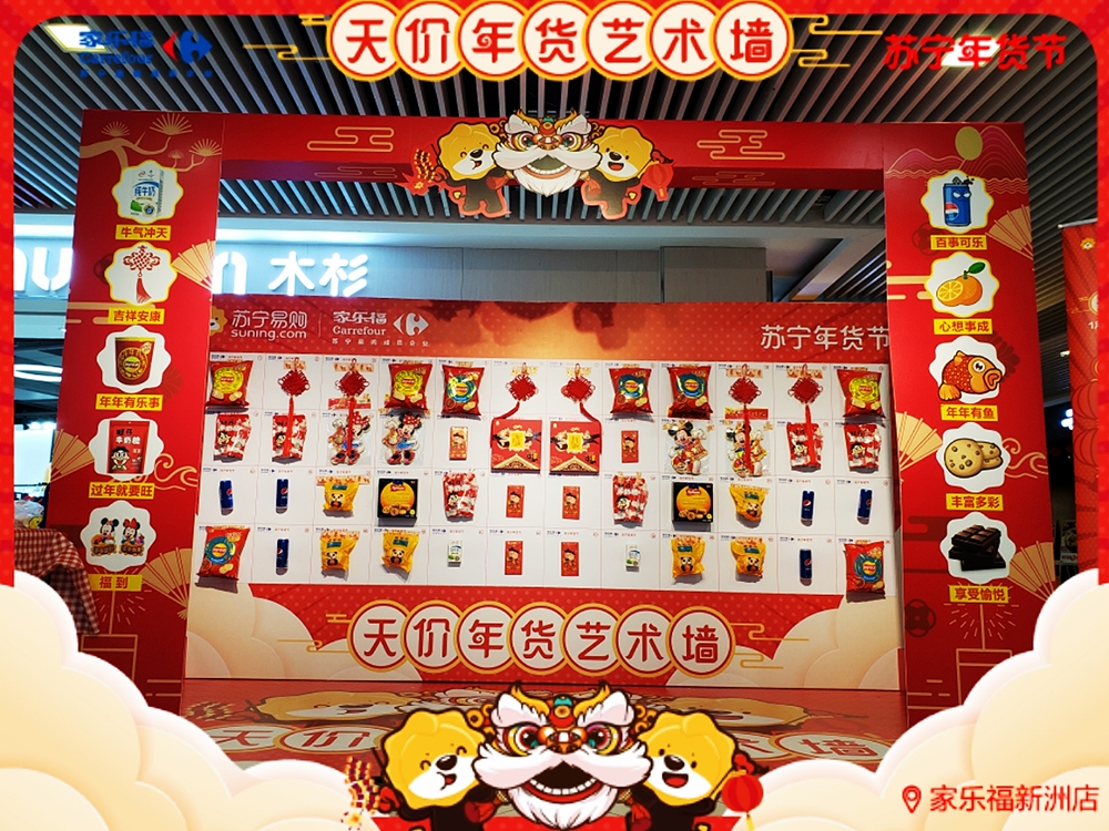 天價年貨藝術(shù)墻驚現(xiàn)深圳家樂福!