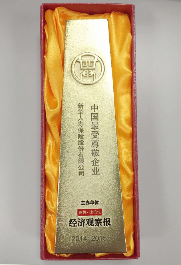 2015年7月,在經(jīng)濟觀察報主辦的2014-2015中國最受尊敬企業(yè)評選中,新華獲評“中國最受尊敬企業(yè)”獎。中國綠色保險最佳典范企業(yè)2015年8月,在經(jīng)濟參考報主辦的“2015中國綠色資本論壇暨中國綠色資本品牌榜”活動中,新華保險榮獲“中國綠色保險最佳典范企業(yè)”。2015胡潤品牌百強9月17日,胡潤研究院發(fā)布《2015胡潤品牌榜》顯示,新華保險以120億元的品牌價值占據(jù)榜單第68名,首次進入榜單前百強,同比強勁上升51位。品牌價值漲幅高達287%,漲幅居金融業(yè)之首,且是唯一一家進入增值品牌十強的金融企業(yè),顯示出新華保險品牌實力的快速提升,以及公司綜合實力的顯著增強。