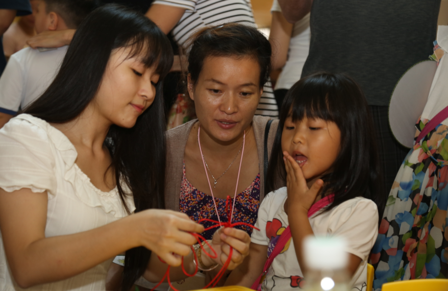 此外,中國結(jié)、素面扇繪畫、剪紙等體驗區(qū)域,也擠滿了小朋友。家長們用手機記錄下孩子體驗制作的過程,對老師們的現(xiàn)場演示贊不絕口。