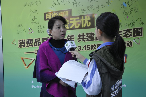深網(wǎng)小記者現(xiàn)場采訪深圳市消費(fèi)者委員會(huì)投訴部部長靳麗娟