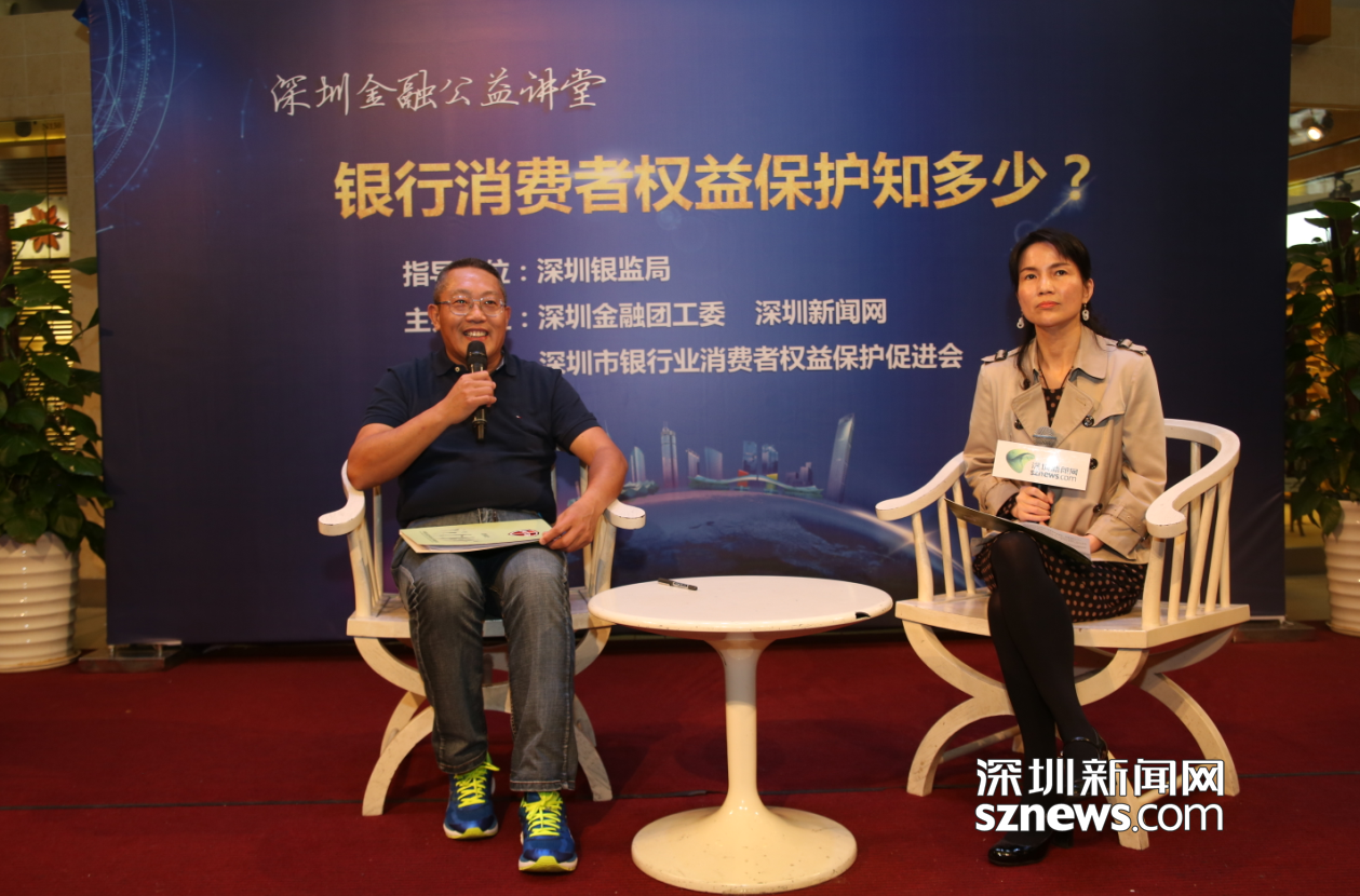 深圳銀監(jiān)局副局長欒鋒(左)在講解金融知識