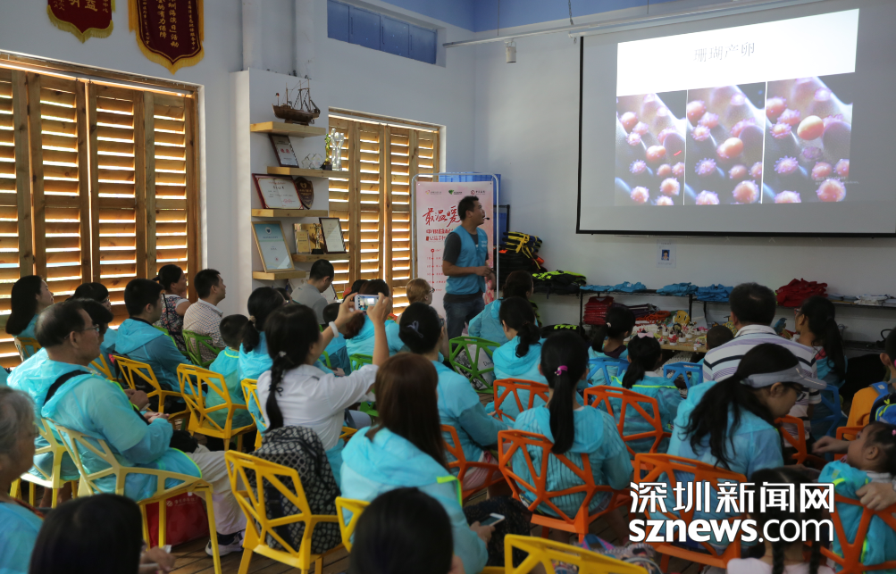 珊瑚蟲義工隊(duì)隊(duì)長(zhǎng)鯊哥為來(lái)到海邊學(xué)習(xí)海洋環(huán)保知識(shí)的孩子們上課。