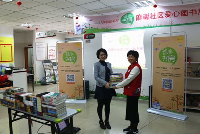 據介紹,為建設“學習型社區(qū)”,麻磡社區(qū)已經建立了“四點半學校閱讀區(qū)”閱讀室,但由于社區(qū)原有圖書陳舊,急需一批新書豐富圖書資源來滿足社區(qū)孩子們的閱讀需求。了解到這一信息后,“爸爸書房”聯(lián)合中國工商銀行深圳分行、深圳市閱讀聯(lián)合會采購了一批全新的兒童讀物送到麻磡社區(qū),建立“爸爸書房愛心圖書角”,助力社區(qū)圖書室建設。