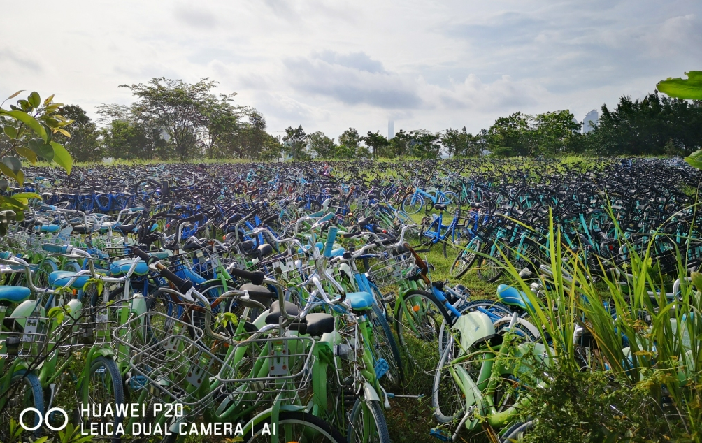 (網友“東の風”拍攝的安托山公園內堆放的廢棄共享單車)