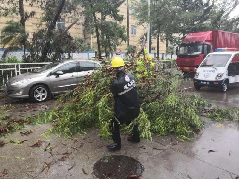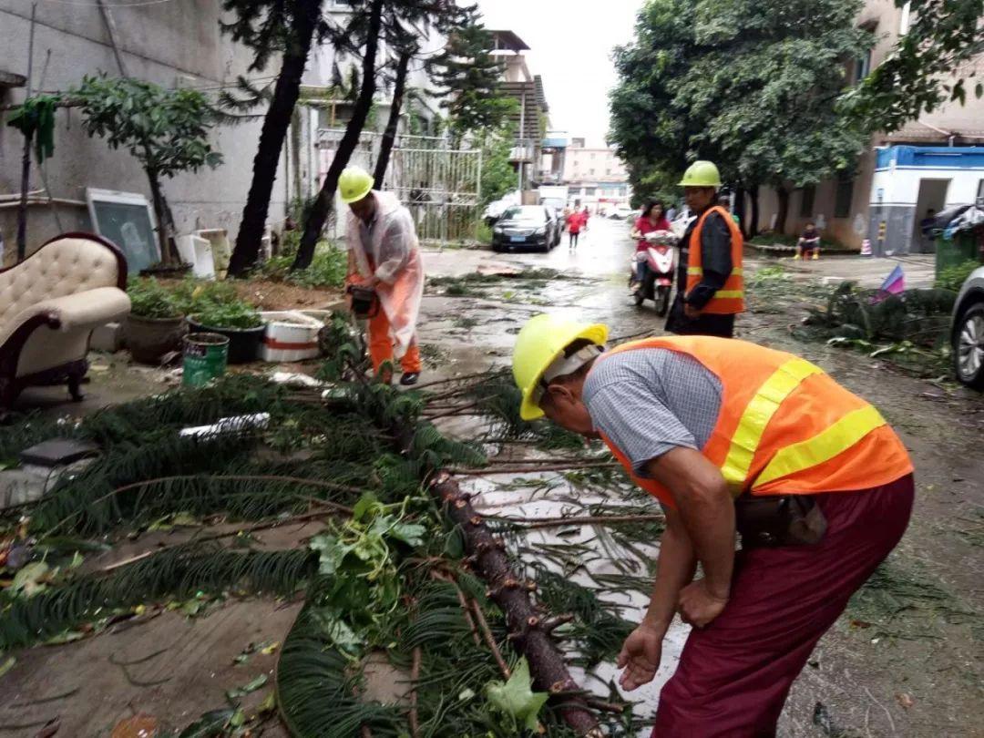 據(jù)統(tǒng)計,截至17日下午6時,福永街道共出動搶險人員770人,出動車輛45臺,清除路面障礙130余處,疏通道路邊溝橋涵70余處,修復(fù)交通設(shè)施45處,連夜貫通、清洗主干道路33條,扶正樹木283棵,清理枝葉約215.5噸、垃圾約198.5噸,修復(fù)垃圾桶630個、果皮箱330組,修復(fù)路燈15桿。