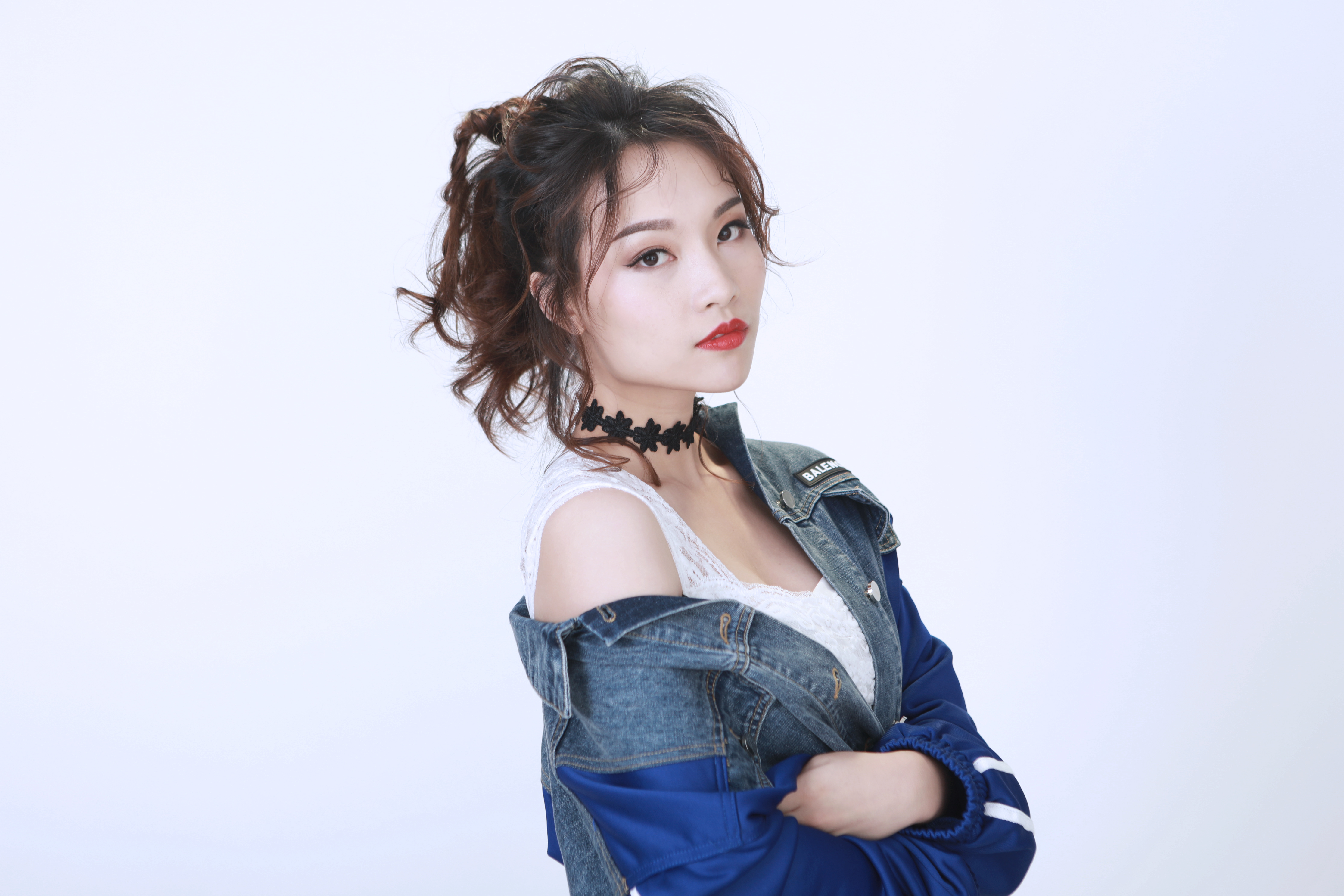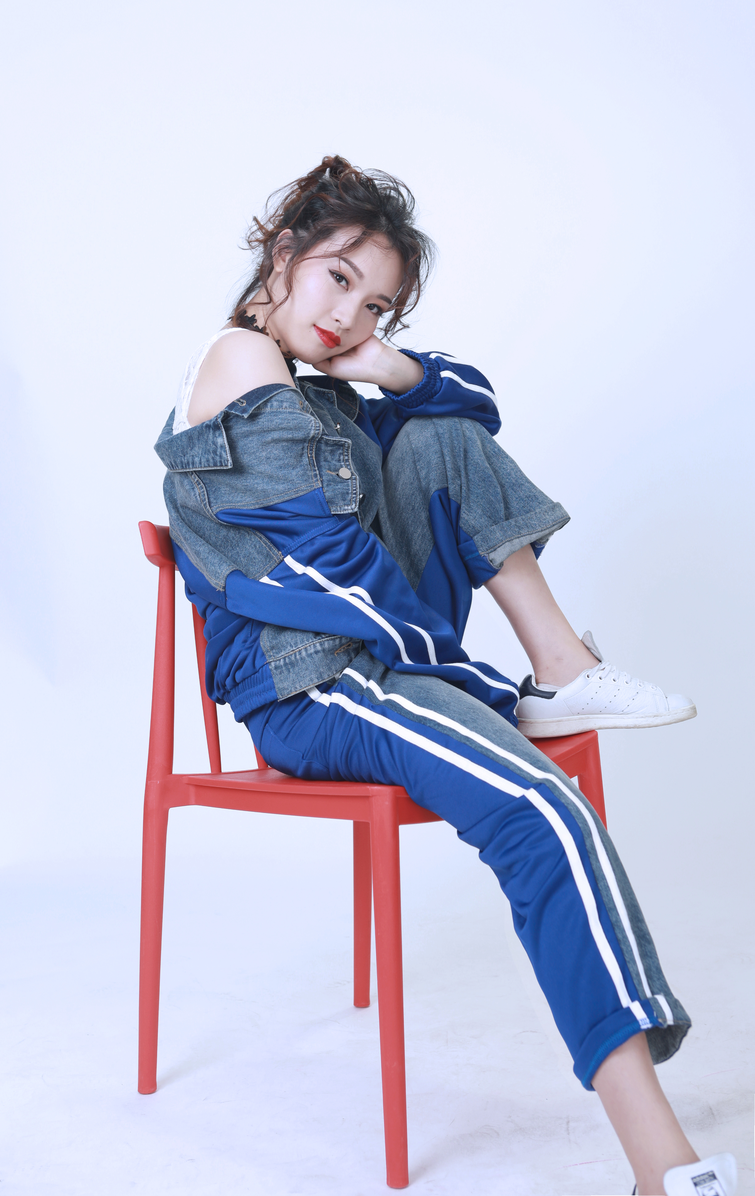 改造后的芷苑小姐姐大走街頭風,一頭卷發(fā)胡亂綁成高馬尾,搭配星星破洞oversized牛仔外套&漸變牛仔skinny,碰撞上大紅唇色,一改之前的乖巧模樣。