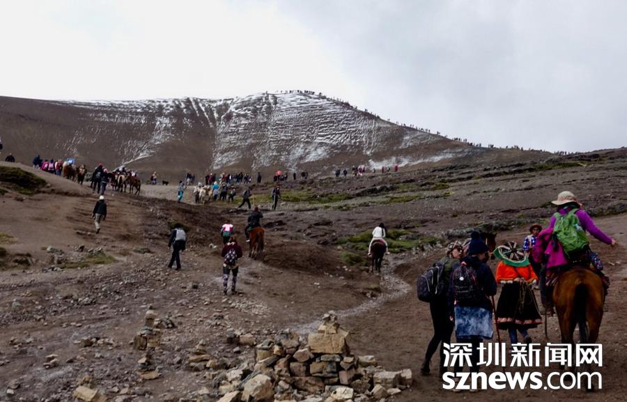 深圳新聞網(wǎng)訊   彩虹山被當(dāng)?shù)厝朔Q為維昆尼卡。深藏于秘魯庫斯科古城附近的安第斯山脈之中,多年來它一直隱藏在冰雪之下,據(jù)說是因為溫室效應(yīng),雪線升高露出真容,才于2016年被發(fā)現(xiàn),并迅速成為世界知名景點。這里可以觀賞到的還有冰川、高山草甸、羊駝以及當(dāng)?shù)厣贁?shù)民族的風(fēng)情。李仁奇攝