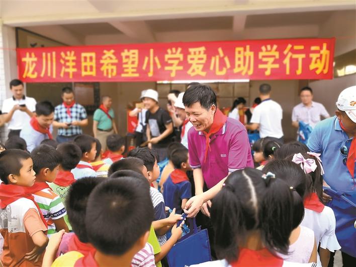 ▲黃爾春參與龍川洋田希望小學助學行動。