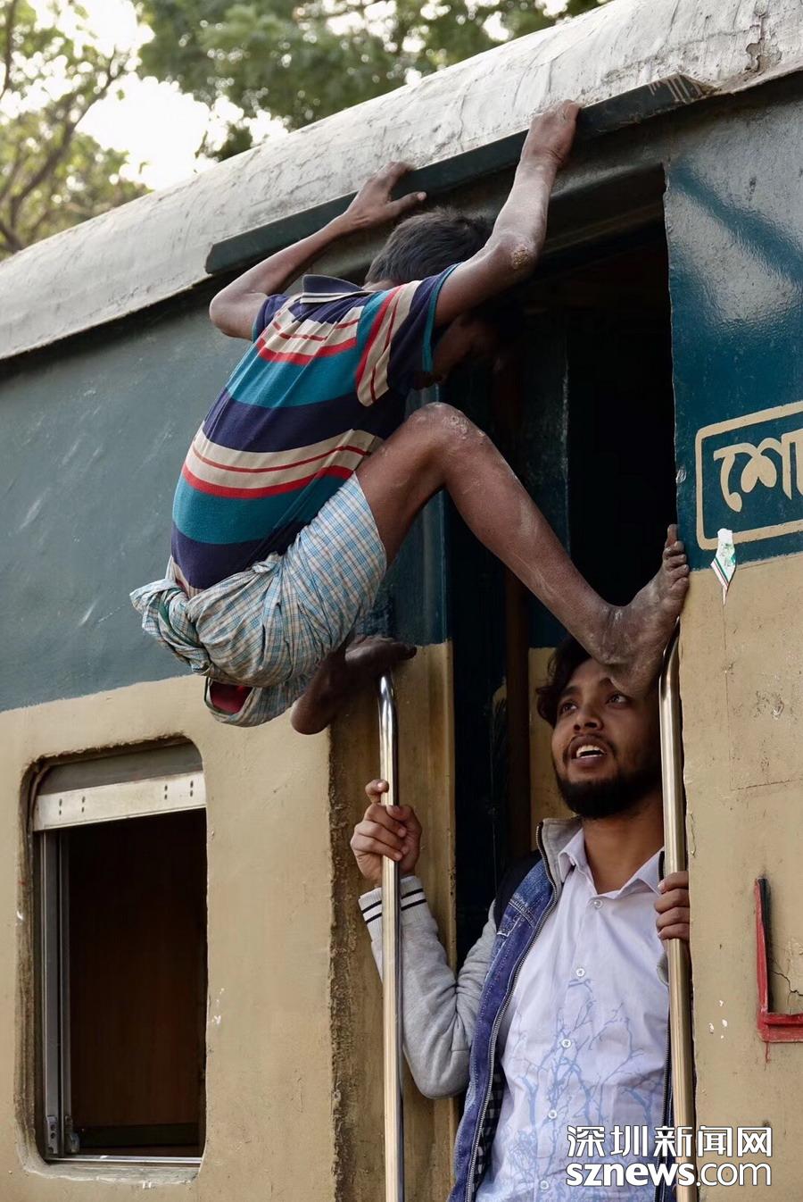 為了能夠搭上免費(fèi)的火車,人們用盡了心思。李仁奇攝