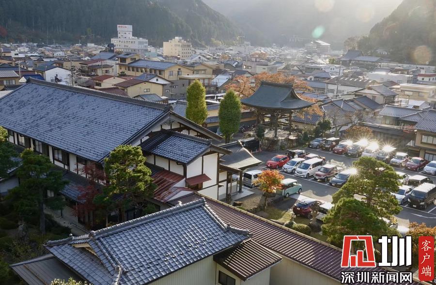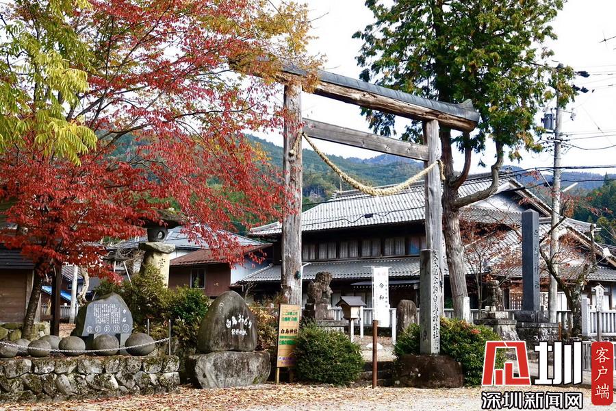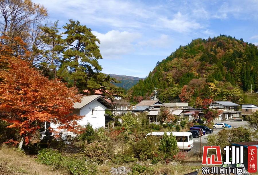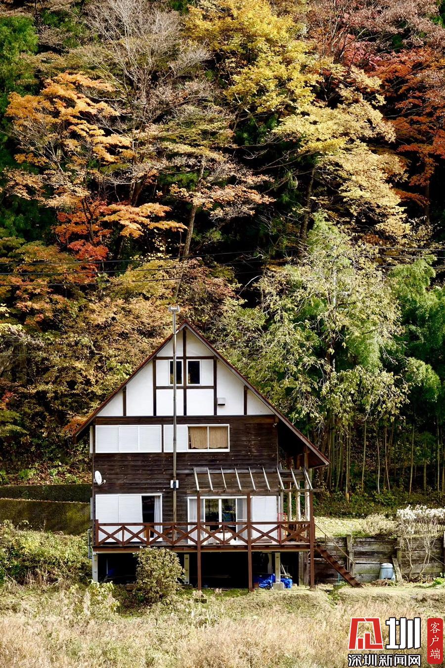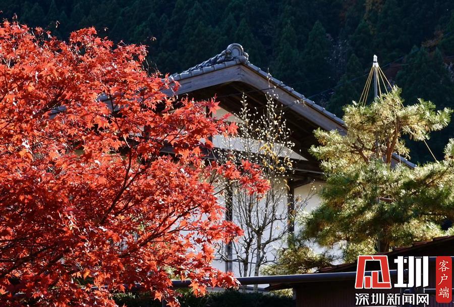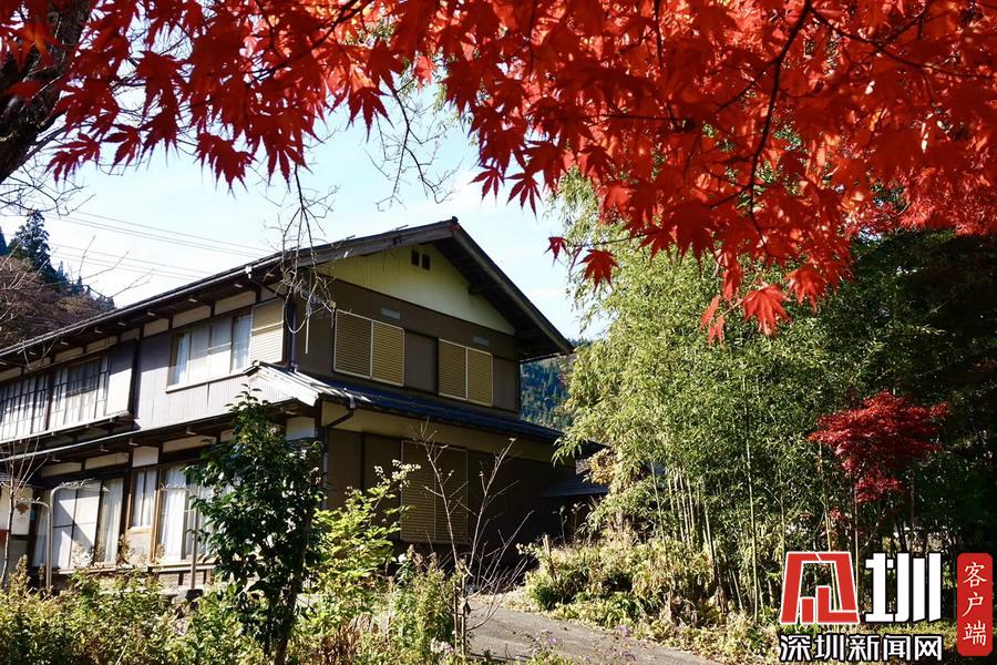 在明媚的陽光下,日本風(fēng)格民居掩映在紅葉之中,房前屋后的小景也很漂亮。李仁奇攝