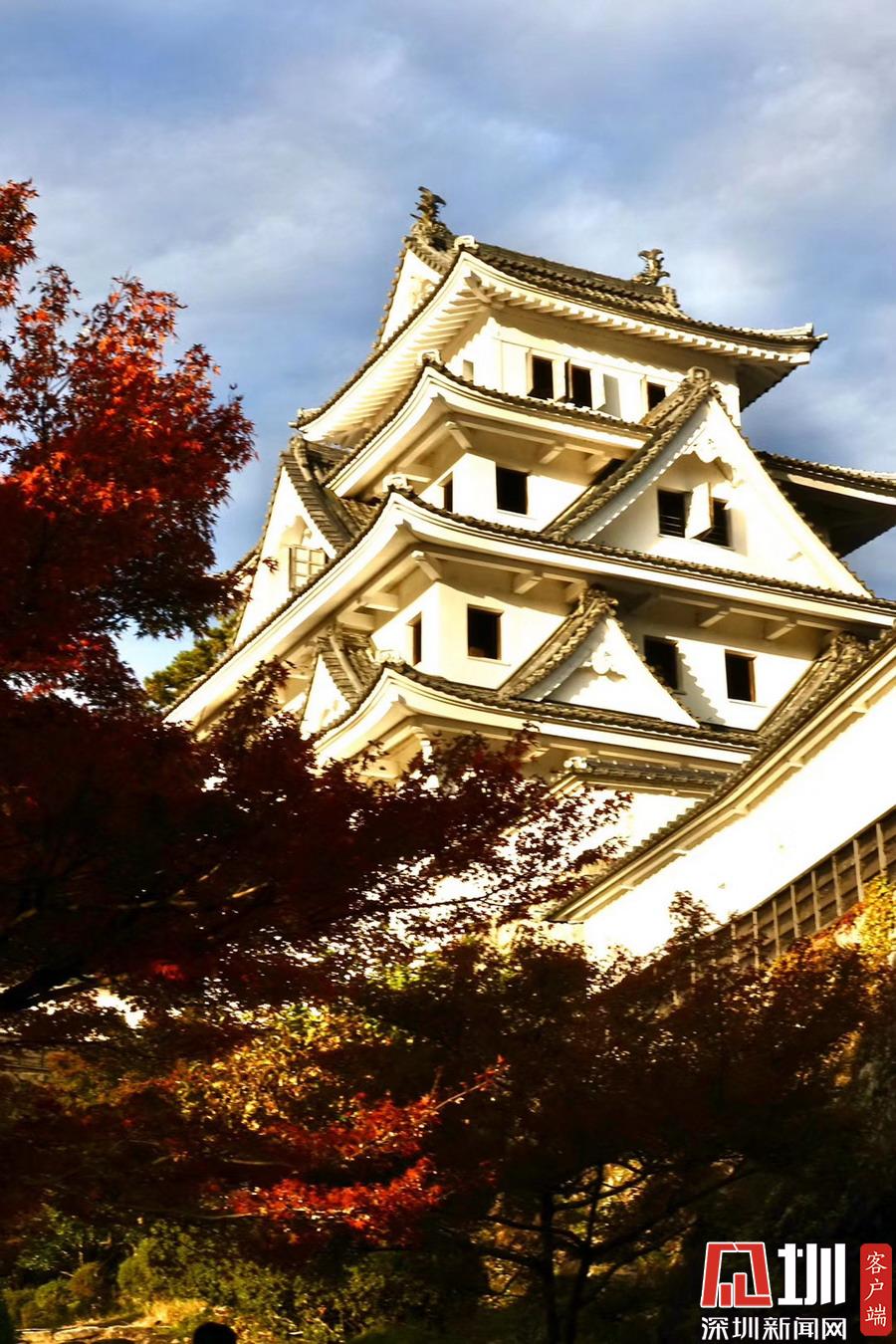 登上海拔354米的八幡山,木造古建筑天守閣下被染紅的楓樹和小城街市盡收眼底。李仁奇攝