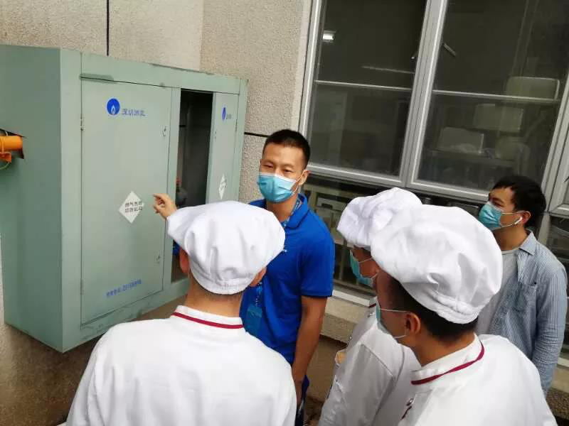 深圳市第三人民醫(yī)院作為新冠肺炎定點救治醫(yī)院,是我市抗擊疫情最重要的前沿陣地。自2020年2月4日龍崗公司啟動“第三醫(yī)院”專項重點保供工作以來,郭志旋每天上午9點到達(dá)現(xiàn)場,認(rèn)真檢測燃?xì)夤艿?、控制總閥、過濾器、調(diào)壓器、流量表等設(shè)備設(shè)施,以一絲不茍的專業(yè)態(tài)度確保燃?xì)夤?yīng)萬無一失。此外,他還積極宣傳安全用氣常識,向第三醫(yī)院食堂工作人員講解如何處置燃?xì)馔话l(fā)事件。