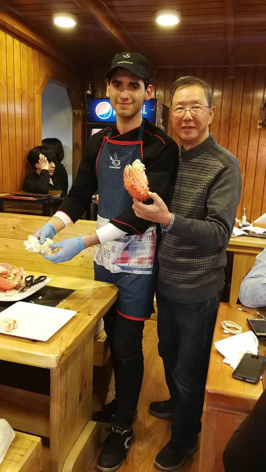 網(wǎng)友們選了一只5公斤多的活蟹,連同其他海鮮和兩瓶酒,9個人消費了14750比索,合人民幣1500元左右,這個價格遠(yuǎn)低于阿拉斯加,只是國內(nèi)消費蜘蛛蟹價格的不足一成。李仁奇攝