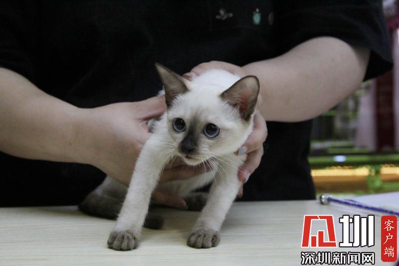 一只貓咪正在被裁判進(jìn)行評估。