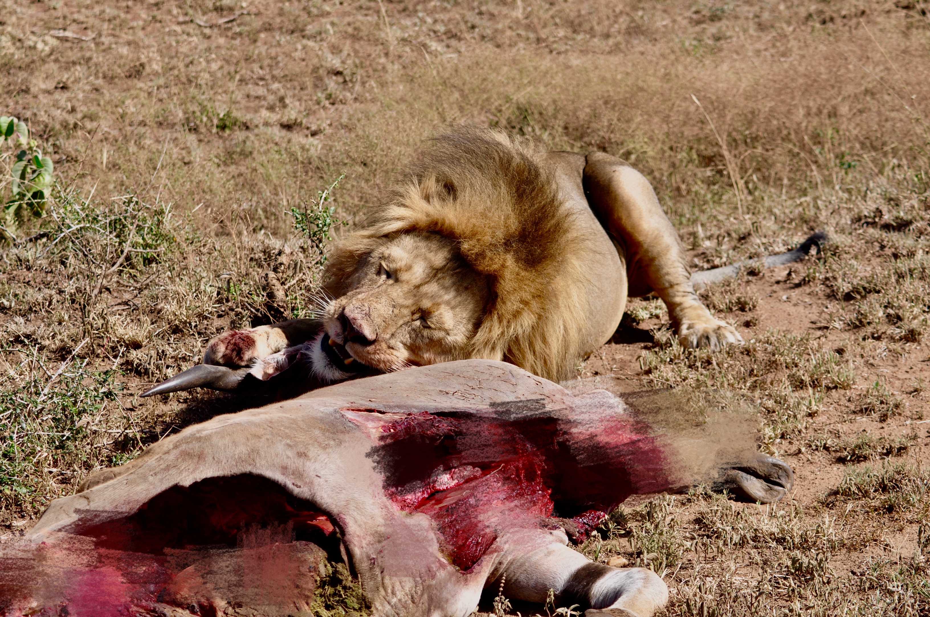 游客們?cè)诰嘈郦{三、五米的車上從容地拍攝了二十多分鐘,記錄下了叢林法則下這場(chǎng)血腥饕餮大餐的全過(guò)程。