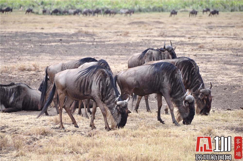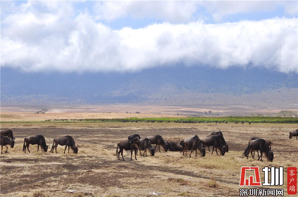 火山口周圍風(fēng)光綺麗,棲居著各種野生動物,主要有野牛、角馬、斑馬、大羚羊、鬣狗、大象、河馬等,總數(shù)達(dá)3萬余頭。李仁奇攝