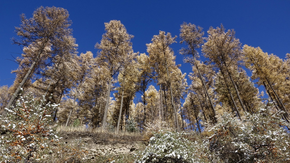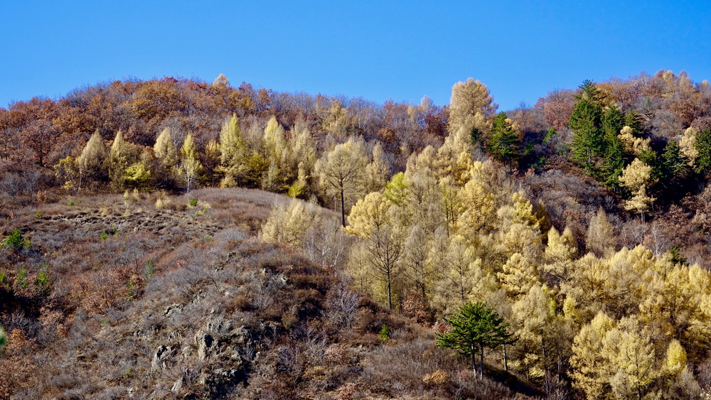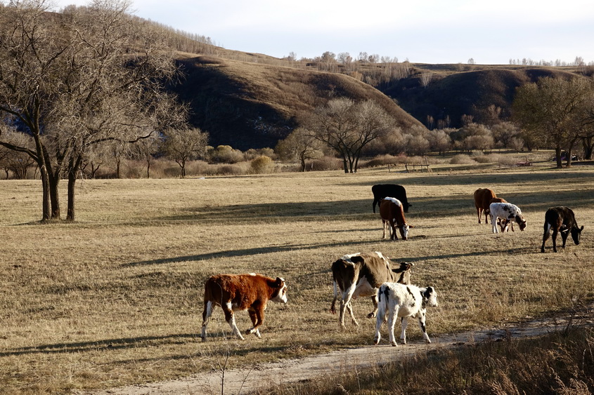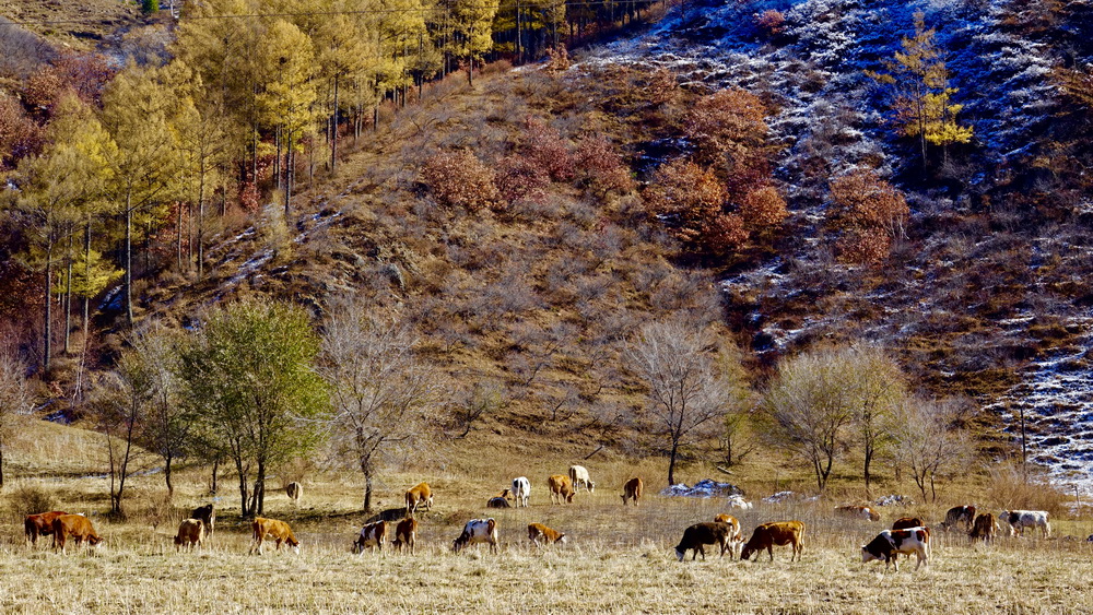 到了10月中旬,這里的草原大多已經(jīng)泛黃,樹葉也大多枯萎,但收獲季節(jié)的一片金黃仍不失為一道美景。李仁奇攝。