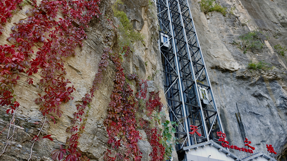 圖為百丈懸崖露天電梯。李仁奇 攝
