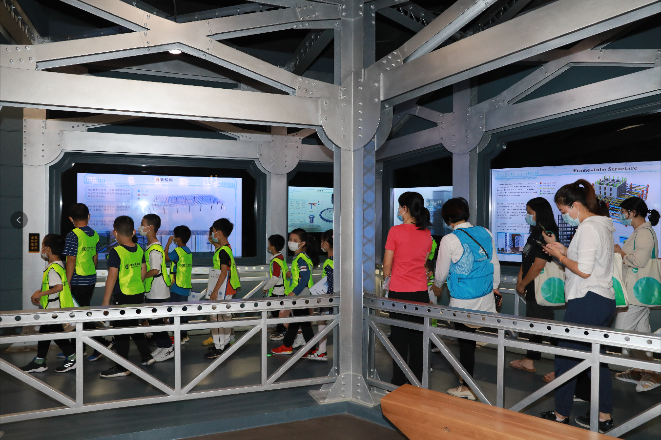序廳、歷史廳、科技廳、互動廳、未來廳,每一個展廳都給大家?guī)聿灰粯拥捏w驗。大小朋友們在老師的帶領(lǐng)下了解世界鋼結(jié)構(gòu)的發(fā)展歷程、探尋中國鋼結(jié)構(gòu)的崛起之路、感受鋼結(jié)構(gòu)文明的氣韻、展望鋼結(jié)構(gòu)的未來。