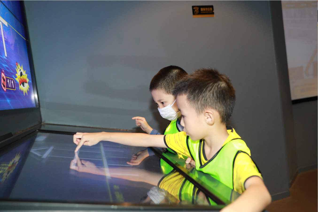 博物館中最讓小朋友流連忘返的當屬互動廳。孩子們爭先恐后的玩著鋼結(jié)構(gòu)爆破游戲。通過VR互動,身臨其境的感受著站在600米高度的深圳平安金融中心頂層施工的情形?!盎怼变摻Y(jié)構(gòu)設(shè)計師、建造師,完成鋼結(jié)構(gòu)建筑的設(shè)計、制造與安裝全過程,并獲得《鋼結(jié)構(gòu)小小工程師星級考核》證書。
