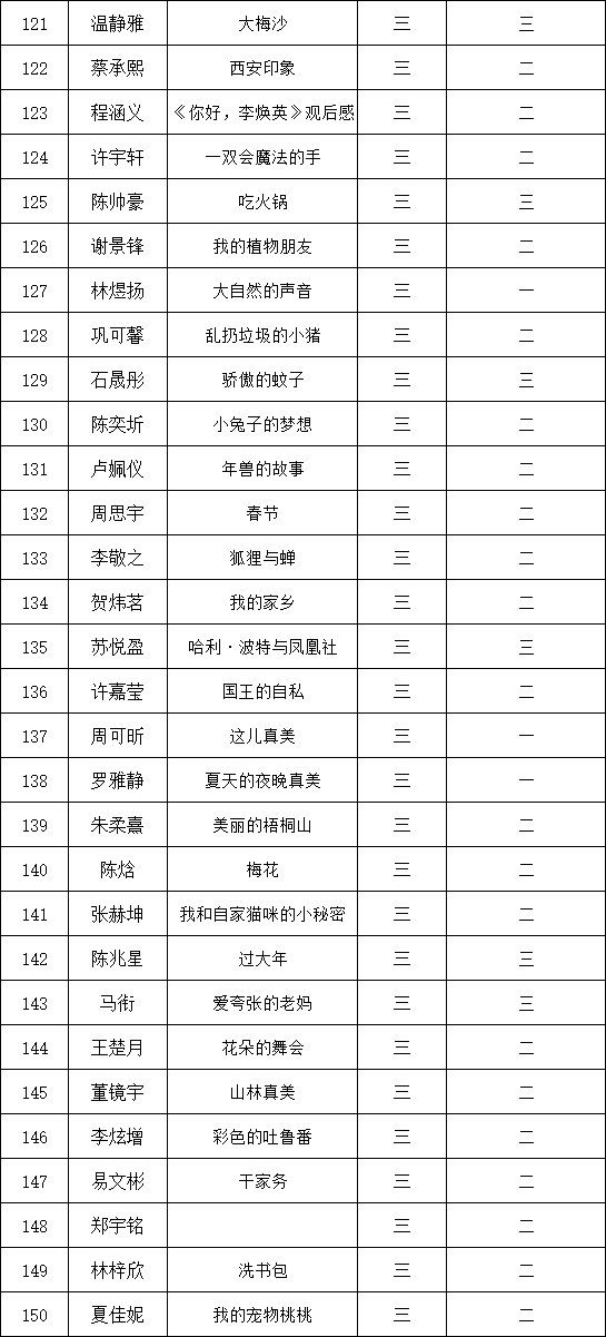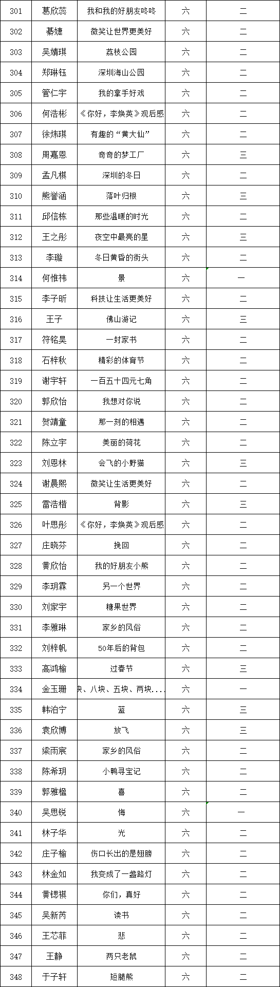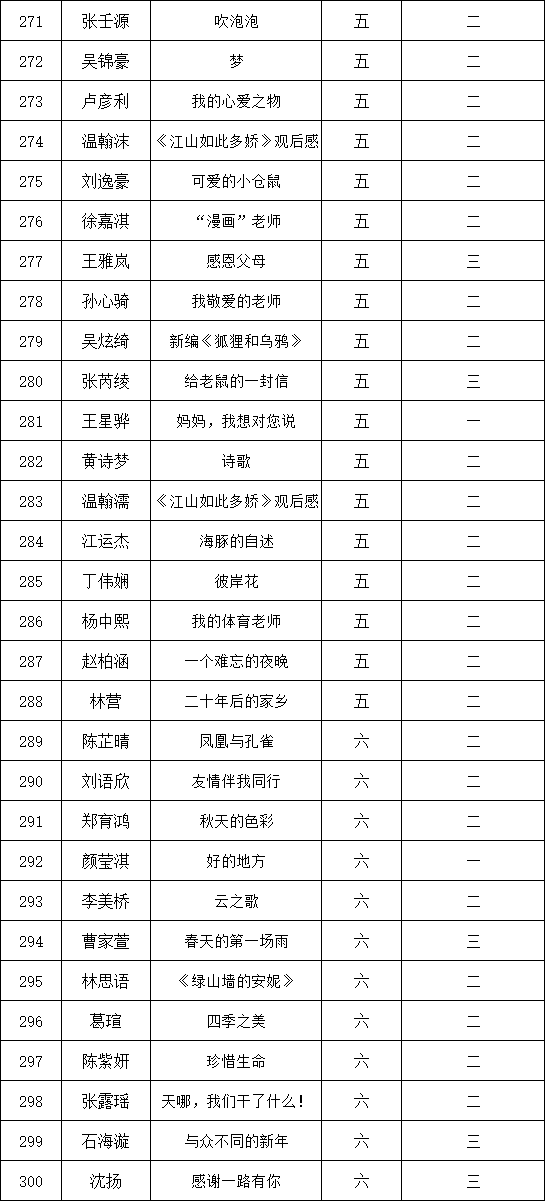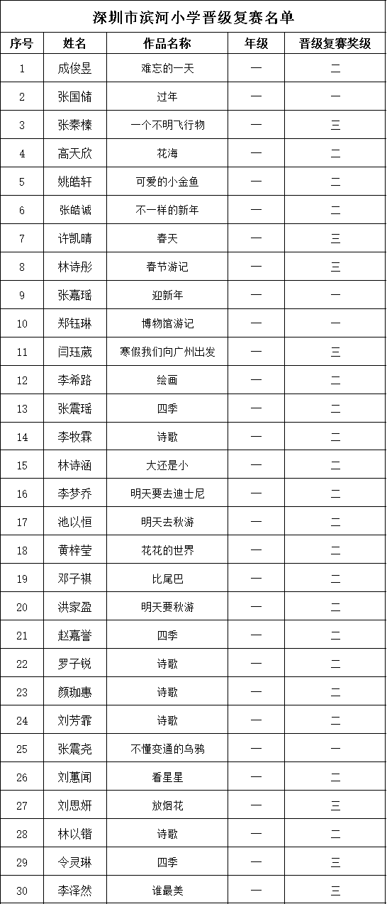 自2021年1月,活動(dòng)征稿啟動(dòng)以來(lái),獲得了深圳市廣大中小學(xué)生、教師、文學(xué)愛(ài)好者的熱烈響應(yīng)積極參與,吸引了深圳百余所學(xué)校的上萬(wàn)人關(guān)注報(bào)名。現(xiàn)公布深圳市濱河小學(xué)校園專場(chǎng)晉級(jí)復(fù)賽名單如下: