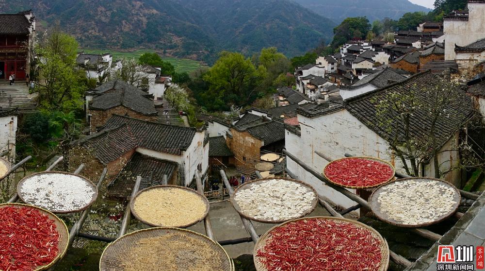 篁嶺曬秋后來逐步成為畫家、攝影家創(chuàng)作的素材。曬秋的“秋”是指豐收的果實(shí),所以曬秋并非秋季專屬,一年四季都有應(yīng)季的農(nóng)作物可曬。