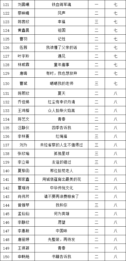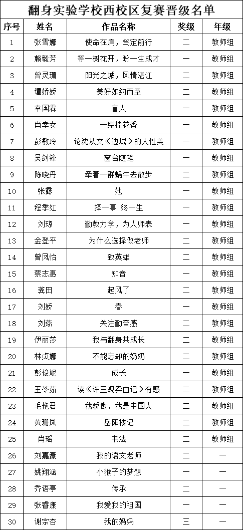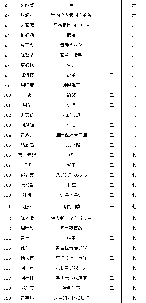 自2021年1月,活動(dòng)征稿啟動(dòng)以來(lái),獲得了深圳市廣大中小學(xué)生、教師、文學(xué)愛(ài)好者的熱烈響應(yīng)積極參與,吸引了深圳百余所學(xué)校的上萬(wàn)人關(guān)注報(bào)名?,F(xiàn)公布翻身實(shí)驗(yàn)學(xué)校西校區(qū)晉級(jí)復(fù)賽名單如下: