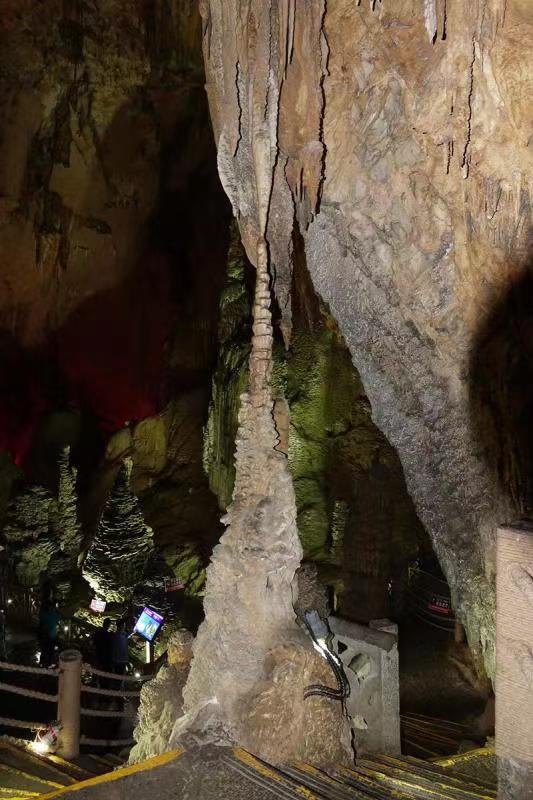 長(zhǎng)達(dá)6公里的游覽線路沿途,有十幾個(gè)空間壯闊的“大廳”,奇形怪狀、體量巨大的鐘乳石令人目不暇接。李仁奇 攝