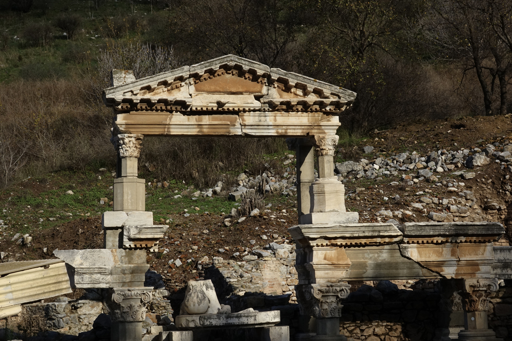 挨著哈德良神廟的圖拉真噴泉,建于公元104年,是為圖拉真皇帝的榮譽(yù)而建。四周有立柱和雕像。雕像是希臘諸神的狄俄尼索斯(酒神)、薩梯(森林之神)、阿芙羅狄蒂(愛與美之女神)和皇室成員。李仁奇 攝