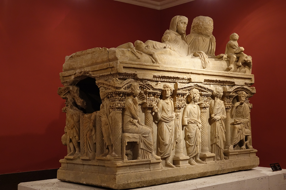 奧蕾莉亞.博蒂安和德米特里亞石棺,它的局部細(xì)節(jié)十分細(xì)膩生動(dòng),窄立面上有一個(gè)盜洞。李仁奇 攝