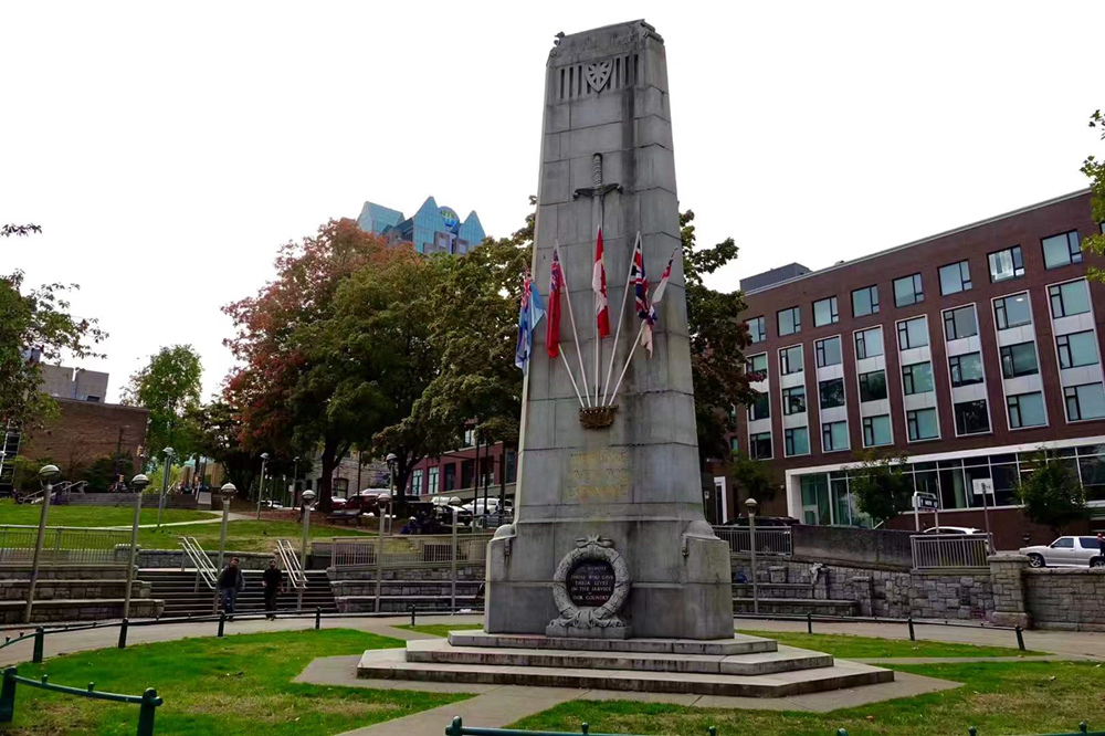 溫哥華勝利廣場(chǎng)中的紀(jì)念碑,紀(jì)念戰(zhàn)爭(zhēng)中犧牲的軍人。李仁奇 攝