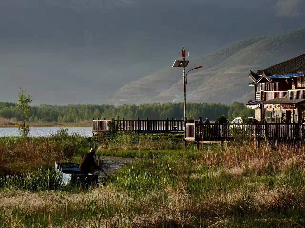 洛洼碼頭,碼頭的所屬地洛洼半島是一個(gè)非常重要的分界線,半島的這邊是著名的草海,半島的那邊是亮海。李仁奇 攝
