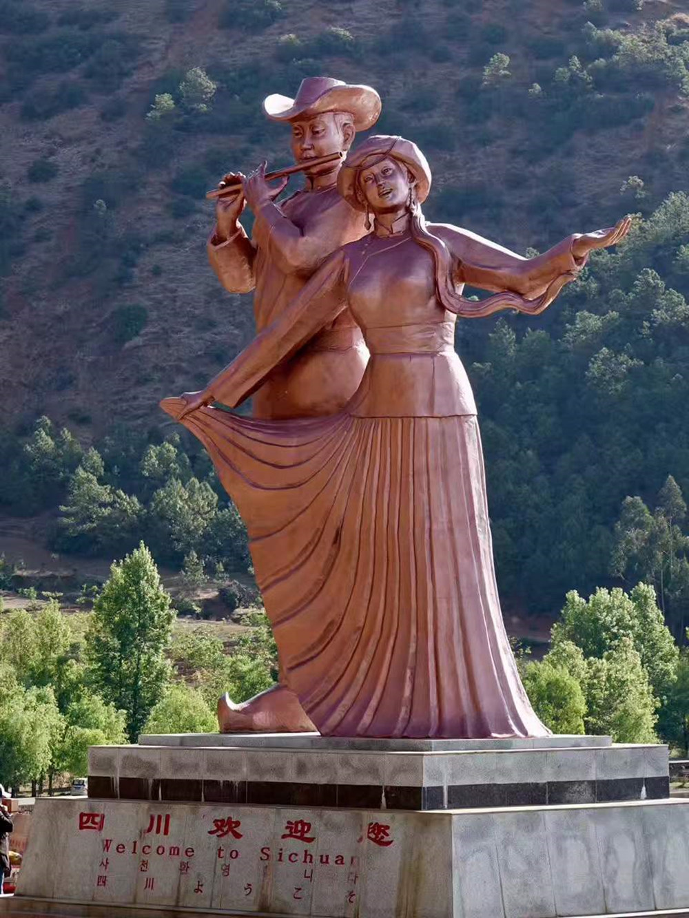 小洛水村是云南境內瀘沽湖邊的一個村寨,村口的這座雕像就是云南和四川的交界線。李仁奇 攝