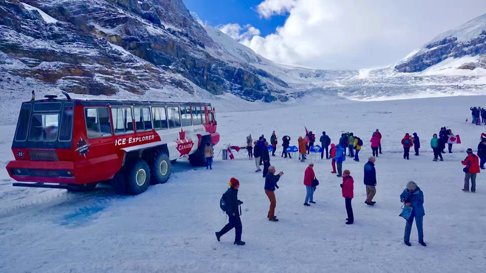 哥倫比亞冰原是北美洲最容易進(jìn)入的冰川群。乘坐特別設(shè)計(jì)的“冰原探險家號”全地形旅游巴士,可以輕松踏上長達(dá)六千米的阿薩巴斯卡冰河上的冰原。李仁奇 攝