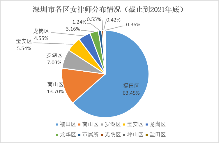 三、深圳女律師區(qū)域分布分析:超過60%的女律師在福田執(zhí)業(yè)