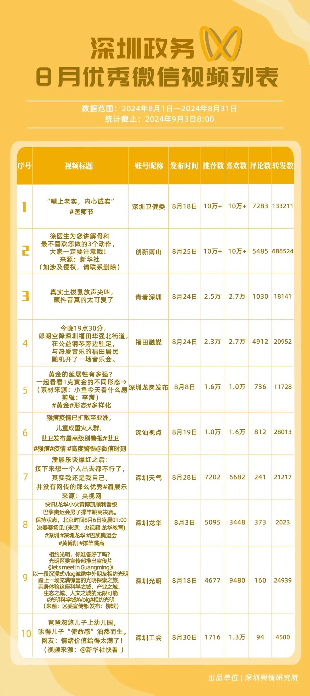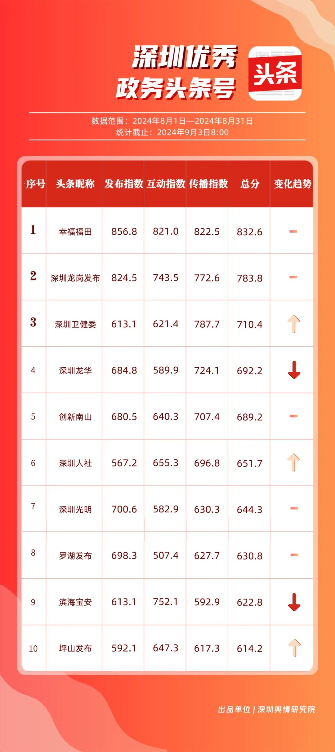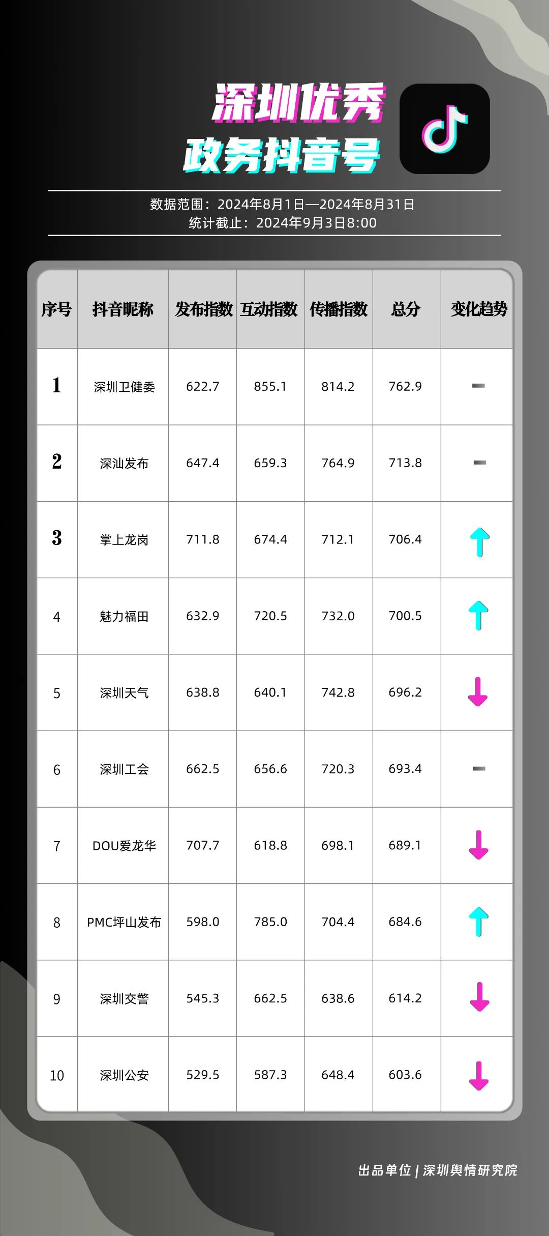 8月“深圳優(yōu)秀政務(wù)新媒體矩陣”發(fā)布,這個(gè)矩陣排名提升,躋身前十!