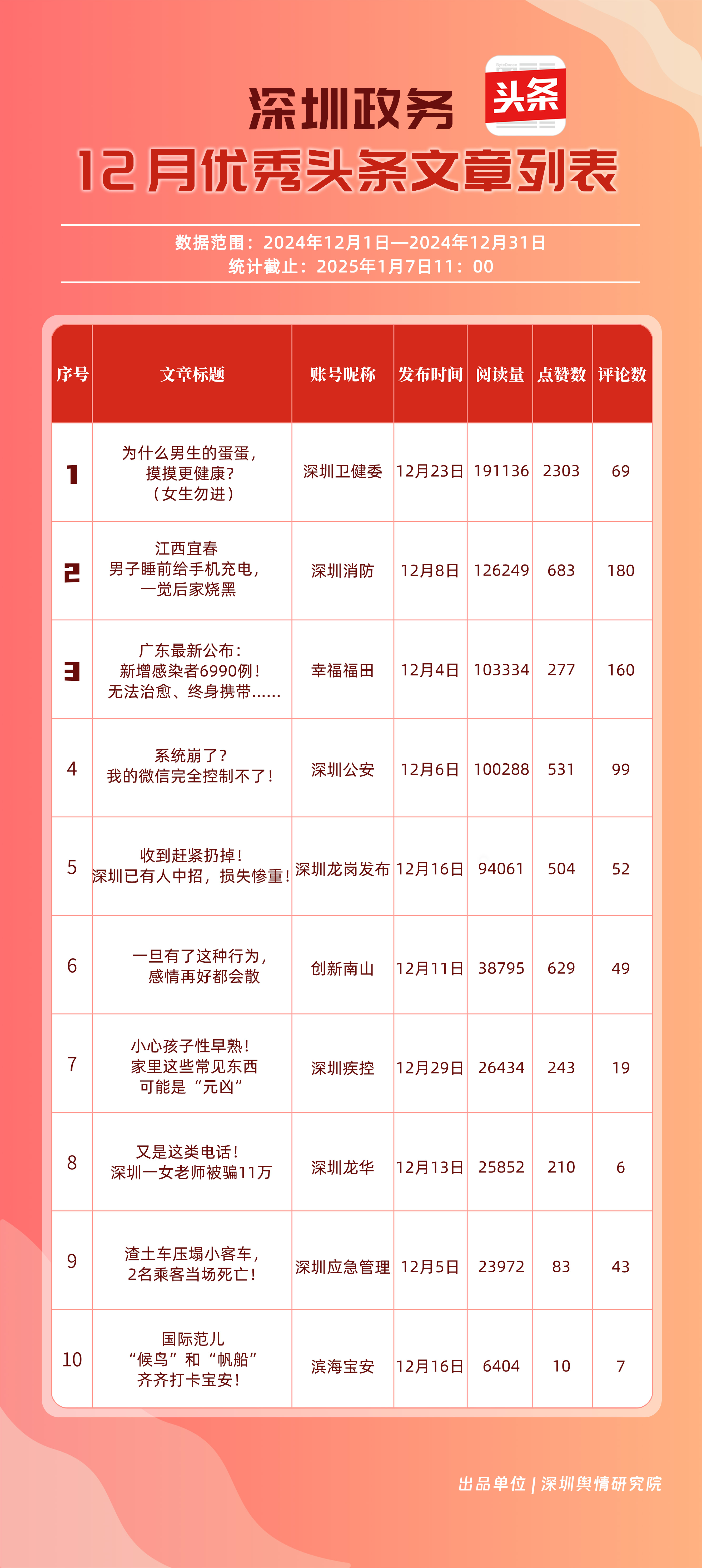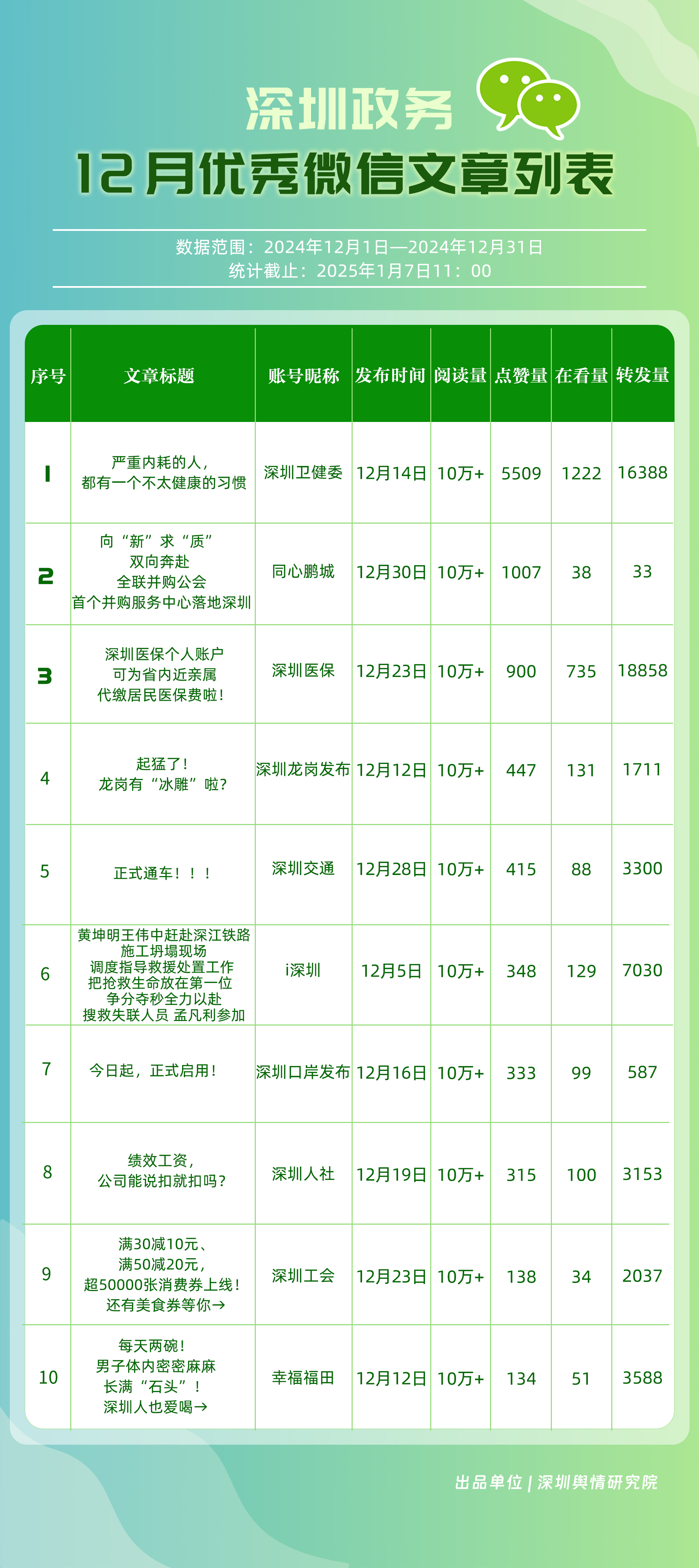 12月“深圳優(yōu)秀政務(wù)新媒體矩陣”來了,這些賬號獲得“100分”!