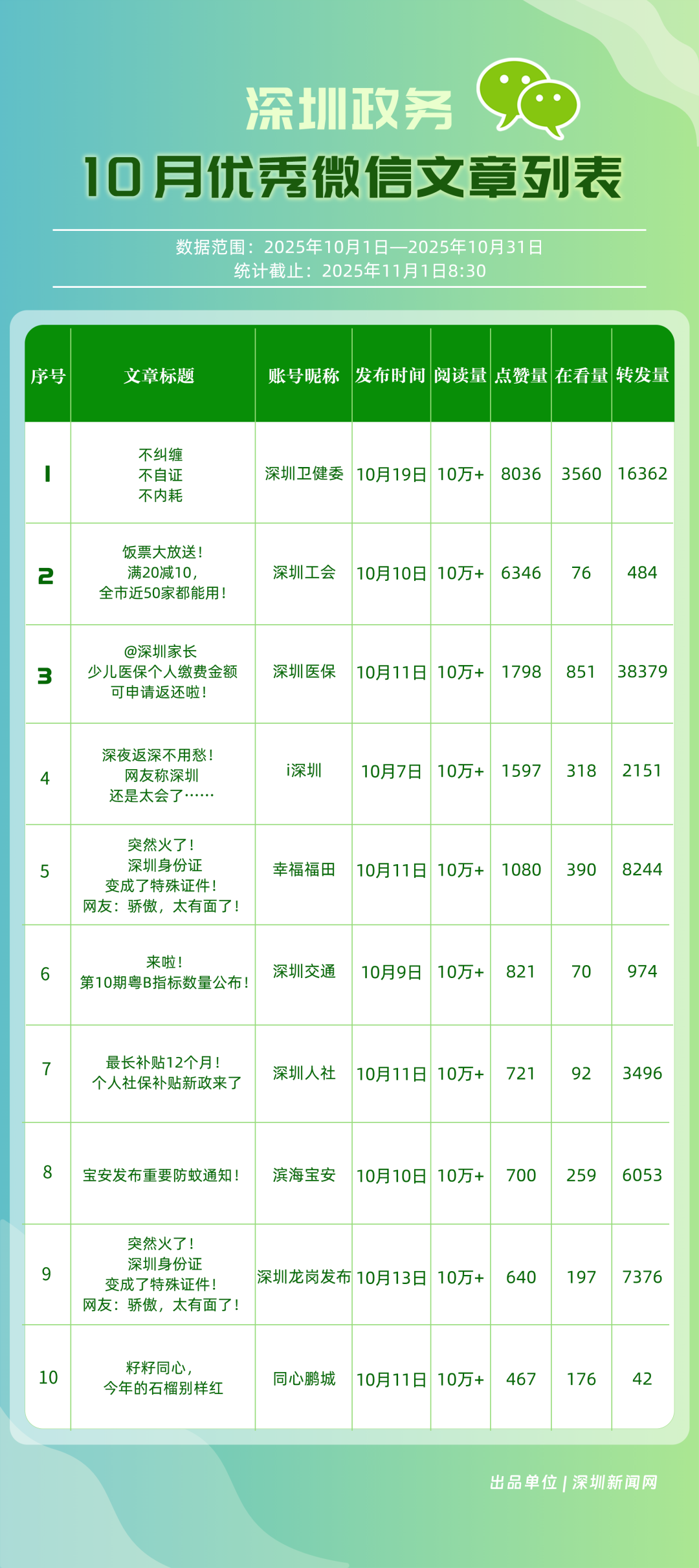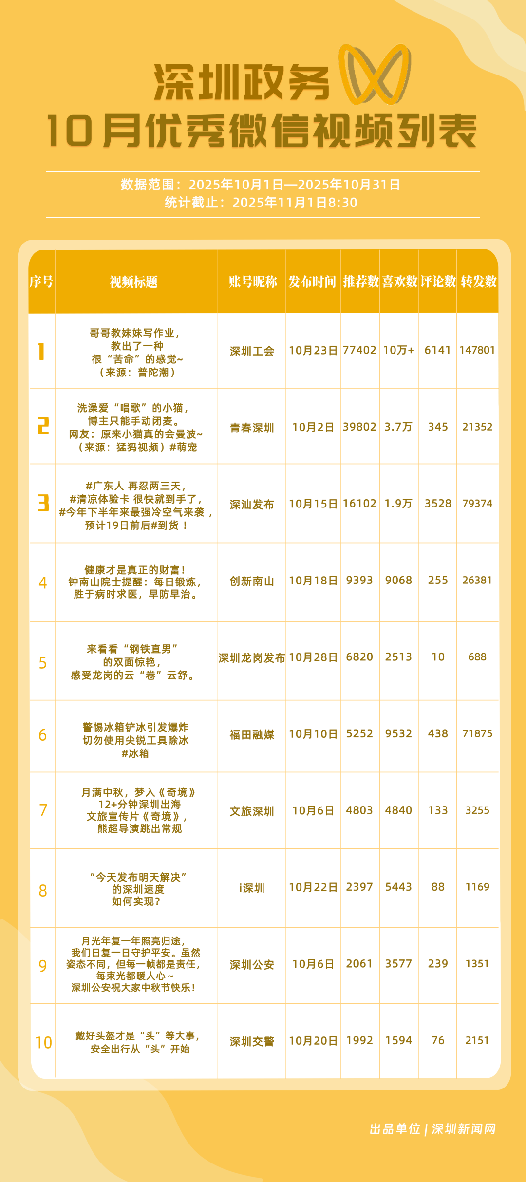 四、10月深圳優(yōu)秀政務新媒體賬號