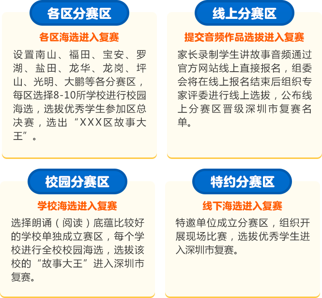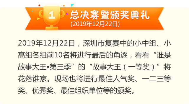 讓閱讀成為動人的風景,讓故事的魅力感動深圳。為助力建設良好的青少年閱讀環(huán)境,激發(fā)學生閱讀興趣,倡導親子閱讀,共建和諧家庭關(guān)系。2020年,第二十一屆深圳讀書月主題活動“誰是故事大王·第四季”在共青團深圳市委員會、深圳市關(guān)愛行動組委會辦公室的指導下再出發(fā)。更長的活動周期,更豐富的參與形式,更專業(yè)的賽制,“誰是故事大王·第四季”等你來解鎖與挑戰(zhàn)!